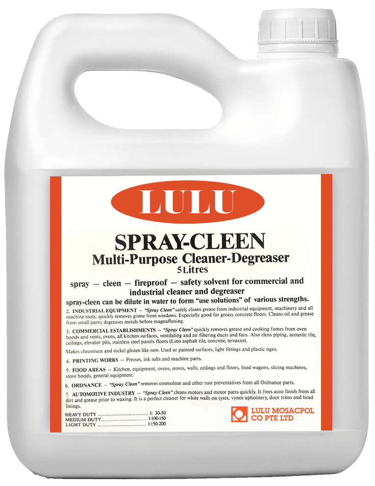 Our Lulu Spray Cleen is formulated to perform light, medium to heavy duty cleaning & degreasing for all types of scenario. It effectively contains all your cleaning solution into one powerful and compact bottle